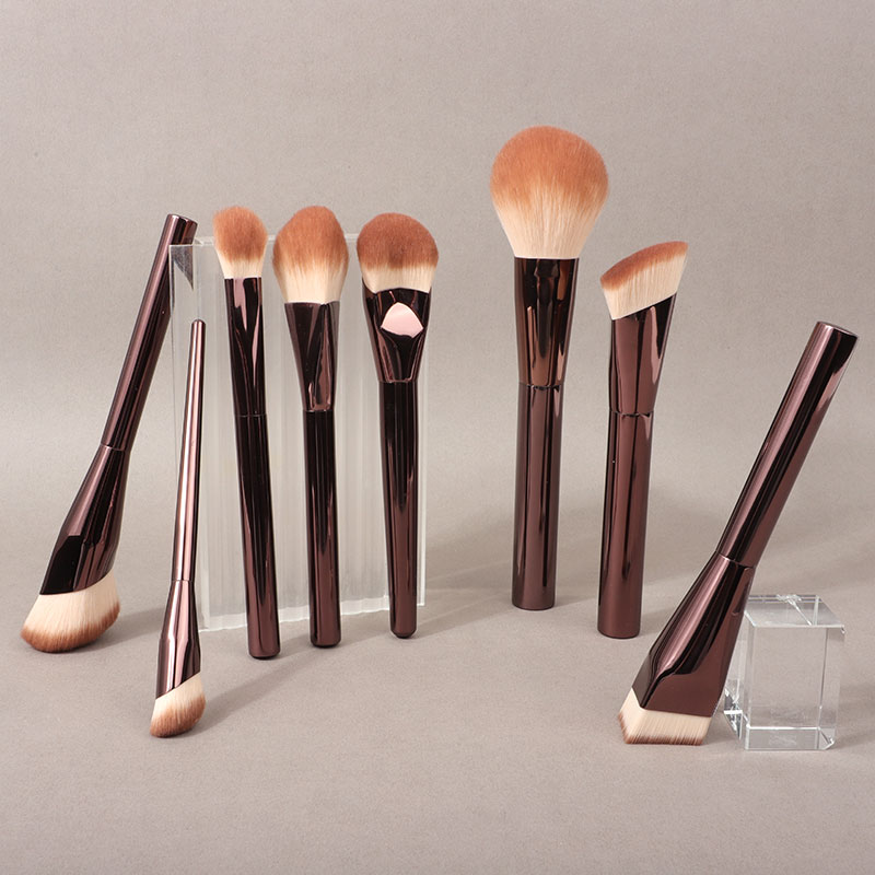Luxury Brown Metal Handle Soft Fluffy Professional Logo Women Quality Beauty Tools OEM High Quality Dense Vegan Makeup Brush Set